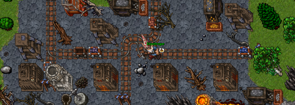 Elyotrope Sells the first pickaxe to start mining. Meet Elyotrope at South of Mordragor. You can start mining on Bronze Veins.